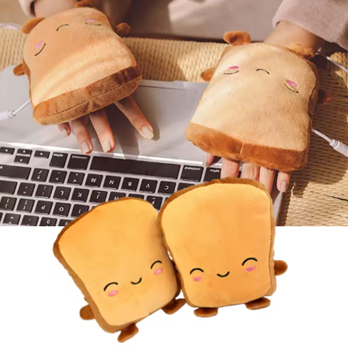 Gants chauffants USB au design toast adorable. Chaleur instantanée, confort en peluche et liberté de mouvement pour des journées douillettes.